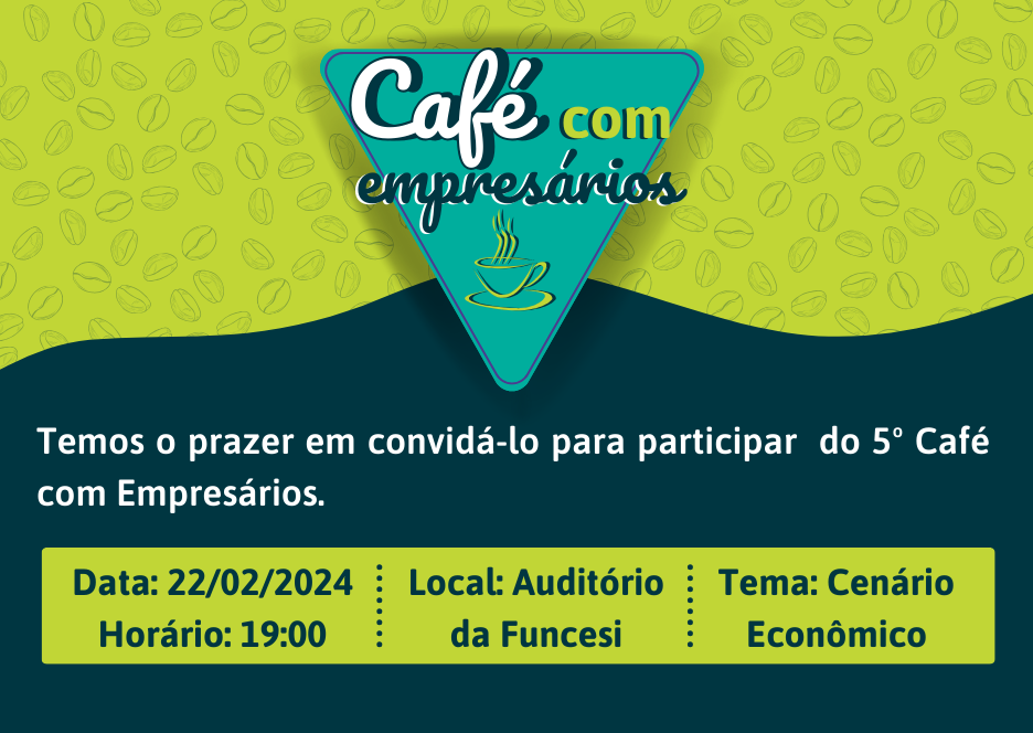 O Sicoob Credivale tem o prazer de te convidar para o 5º Café com Empresários, marcado para o dia 22/02/2024, às 19h, no auditório da UNIFUNCESI. Este evento contará com a palestra da renomada Rita Mundim, abordando o tema do atual cenário econômico.